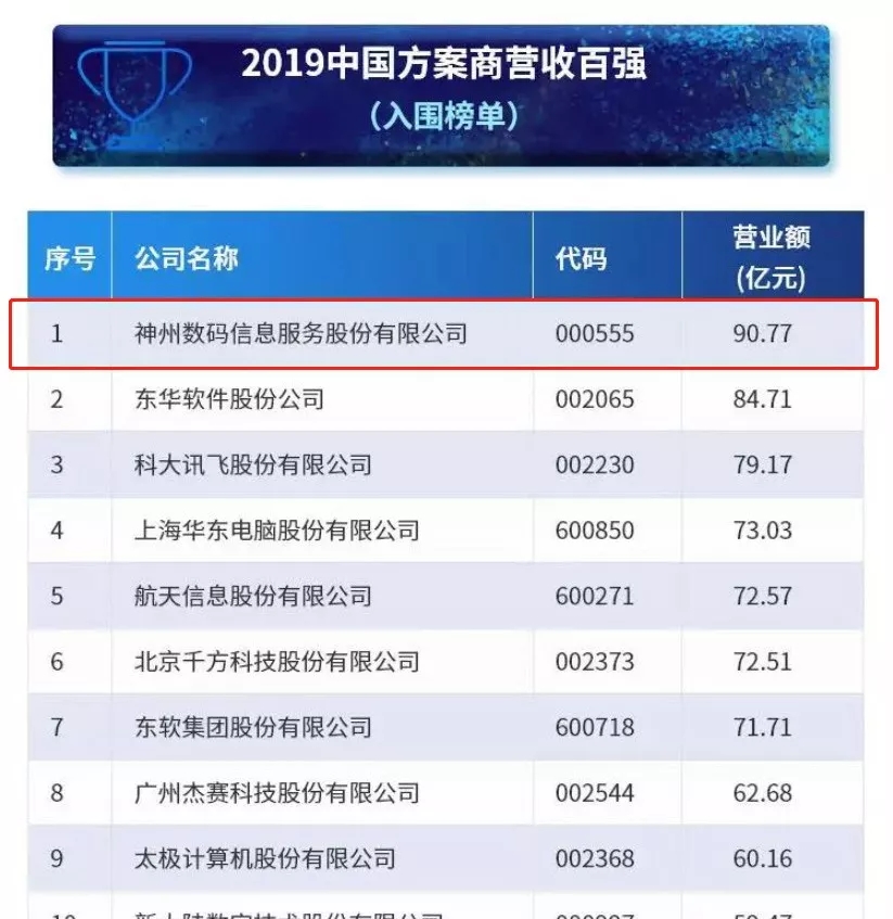 2019年营收百强榜,神州信息位列榜首