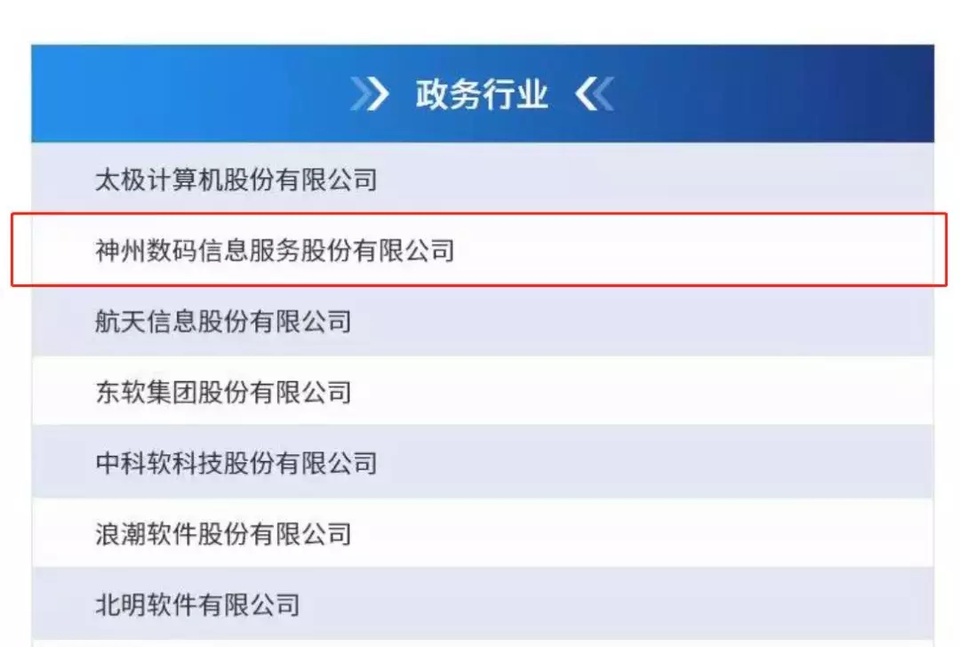 2019ISV政务行业十强榜,神州信息位列第二位