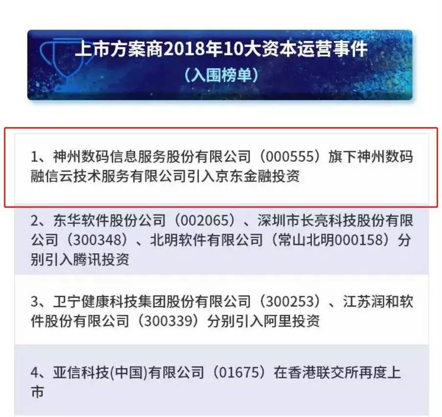 2019ISV金融行业十强榜,神州信息位列第四位