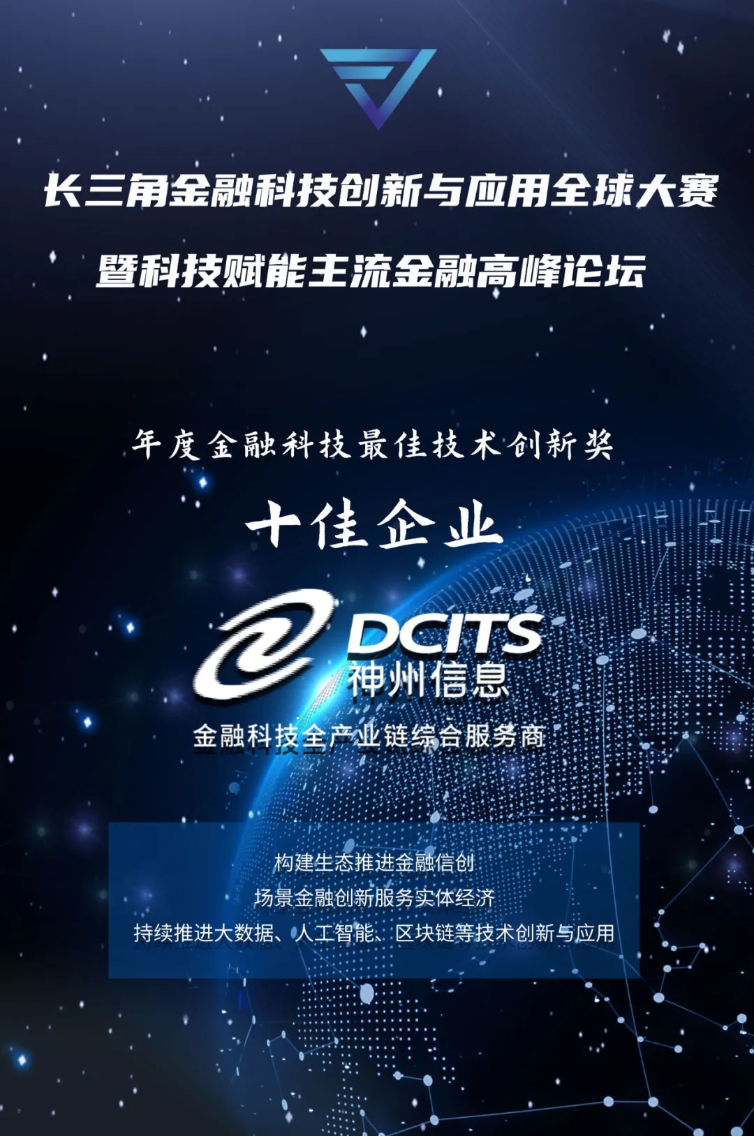 1月16日,由上海市黄浦区金融发展服务中心、华东师范大学金融科技研究院、浙江大学互联网金融研究院、苏州市金融科技协会主办的“第一届长三角金融科技创新与应用全球大赛总决赛暨科技赋能主流金融高峰论坛” 在上海黄浦滨江举办。神州信息喜获“年度金融科技最佳技术创新十佳企业”。